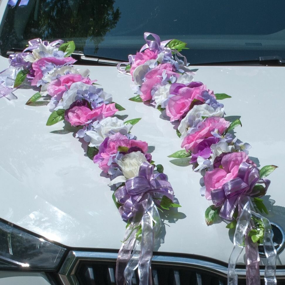 Купить Свадебное украшение на машину "Елизавета сиреневая"