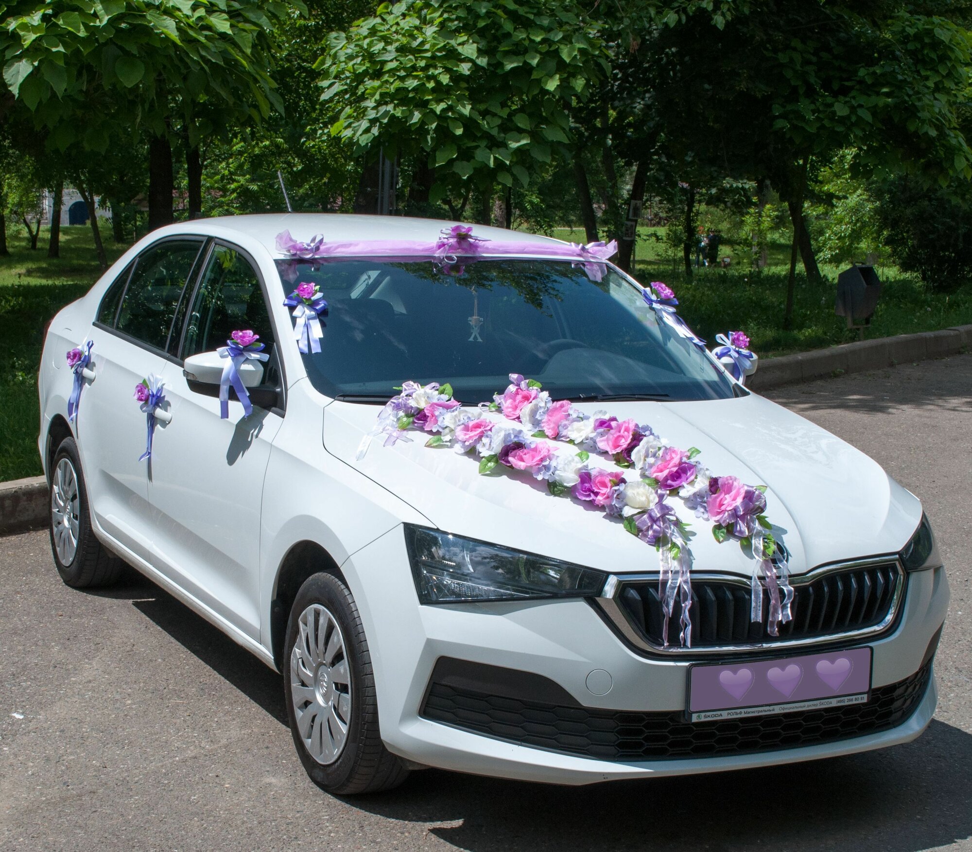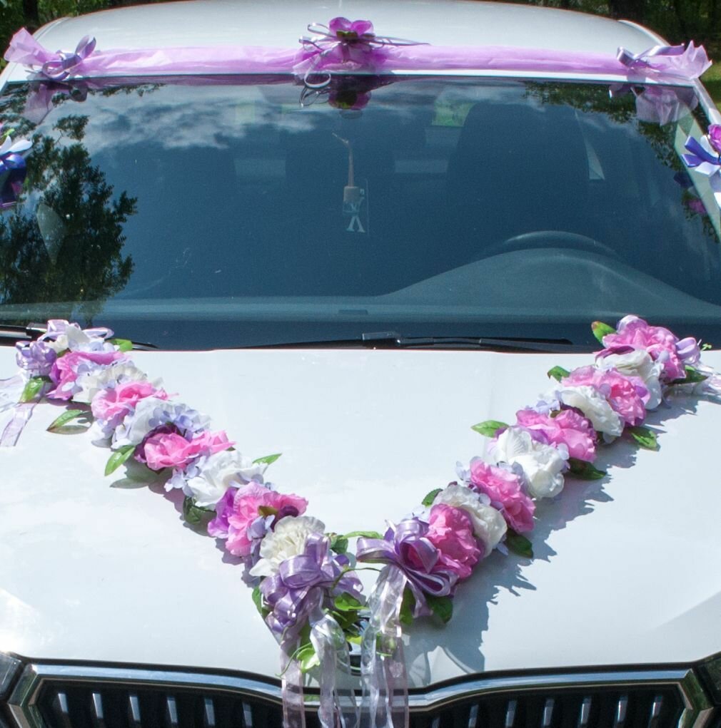 Свадебное украшение на машину "Елизавета сиреневая" интересное: