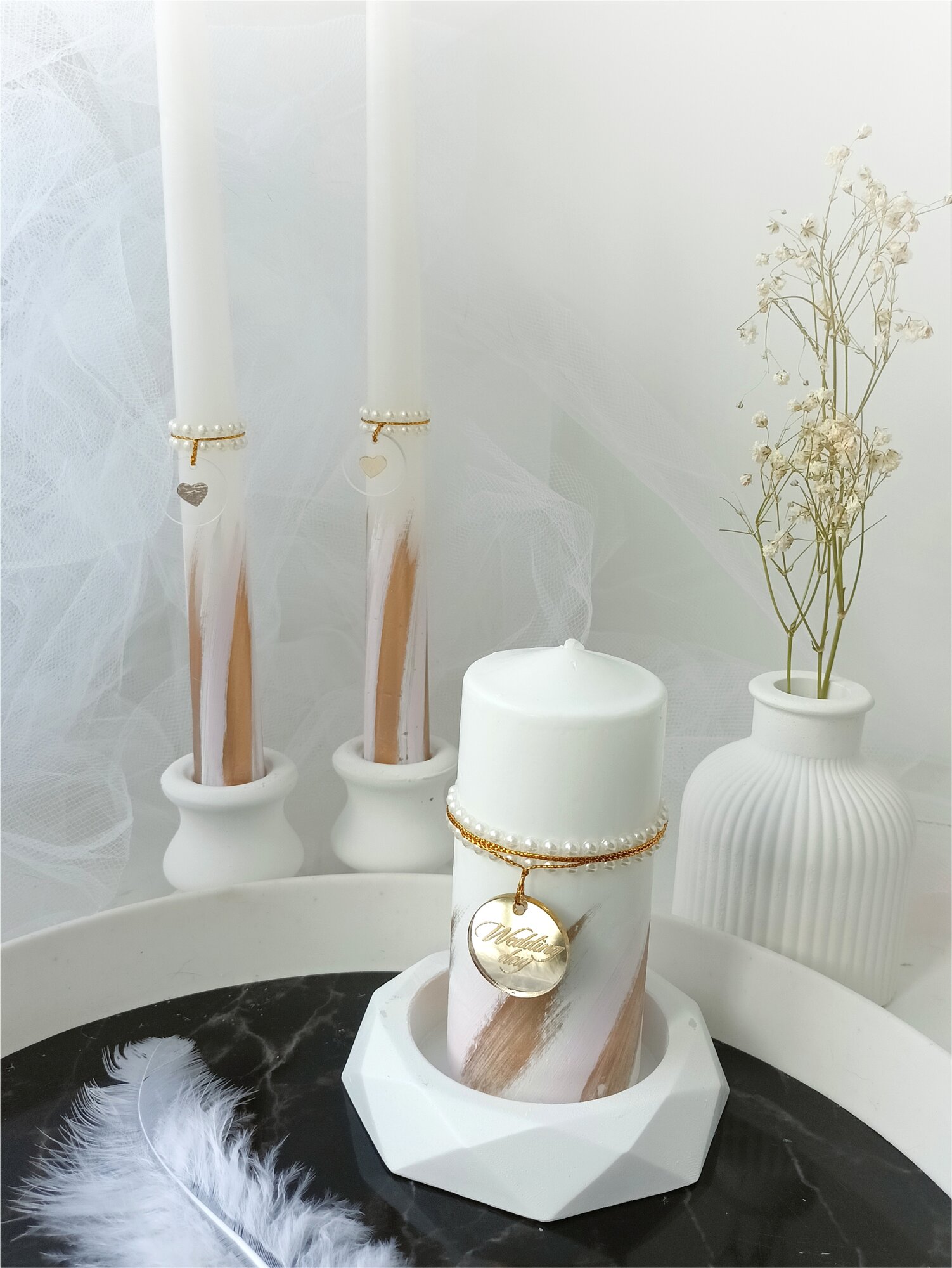 Семейный очаг белый, свадебные свечи, набор свечей для свадьбы с подсвечниками