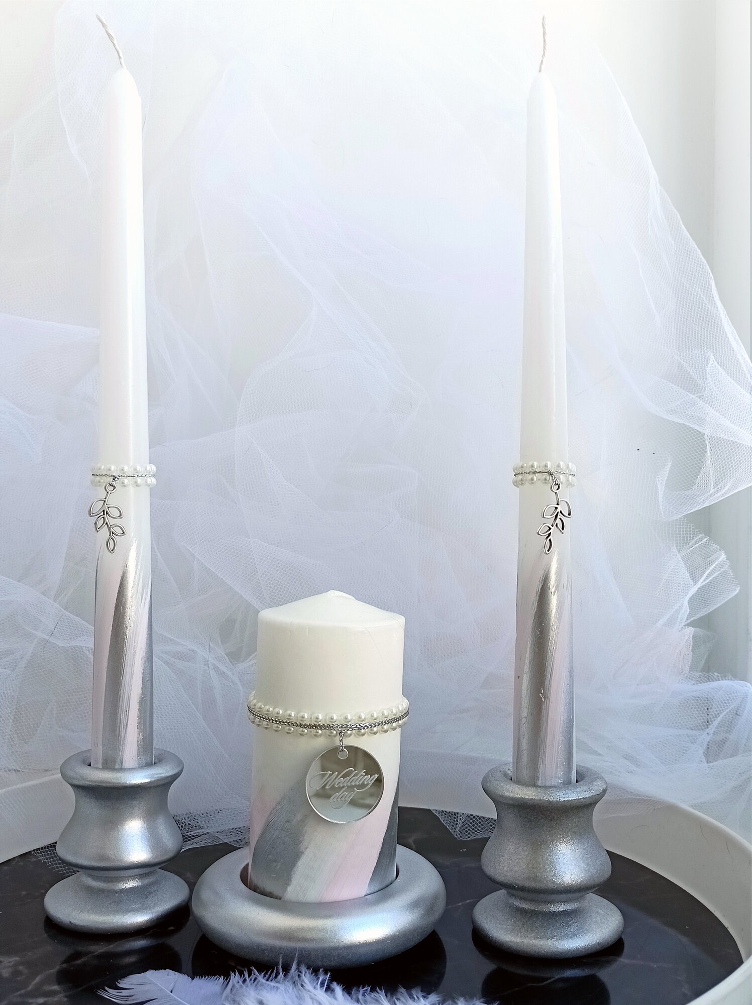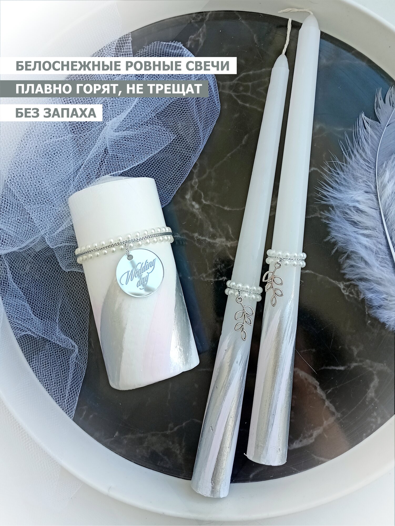 Свечи свадебные, набор свечей, Домашний очаг, серебристый