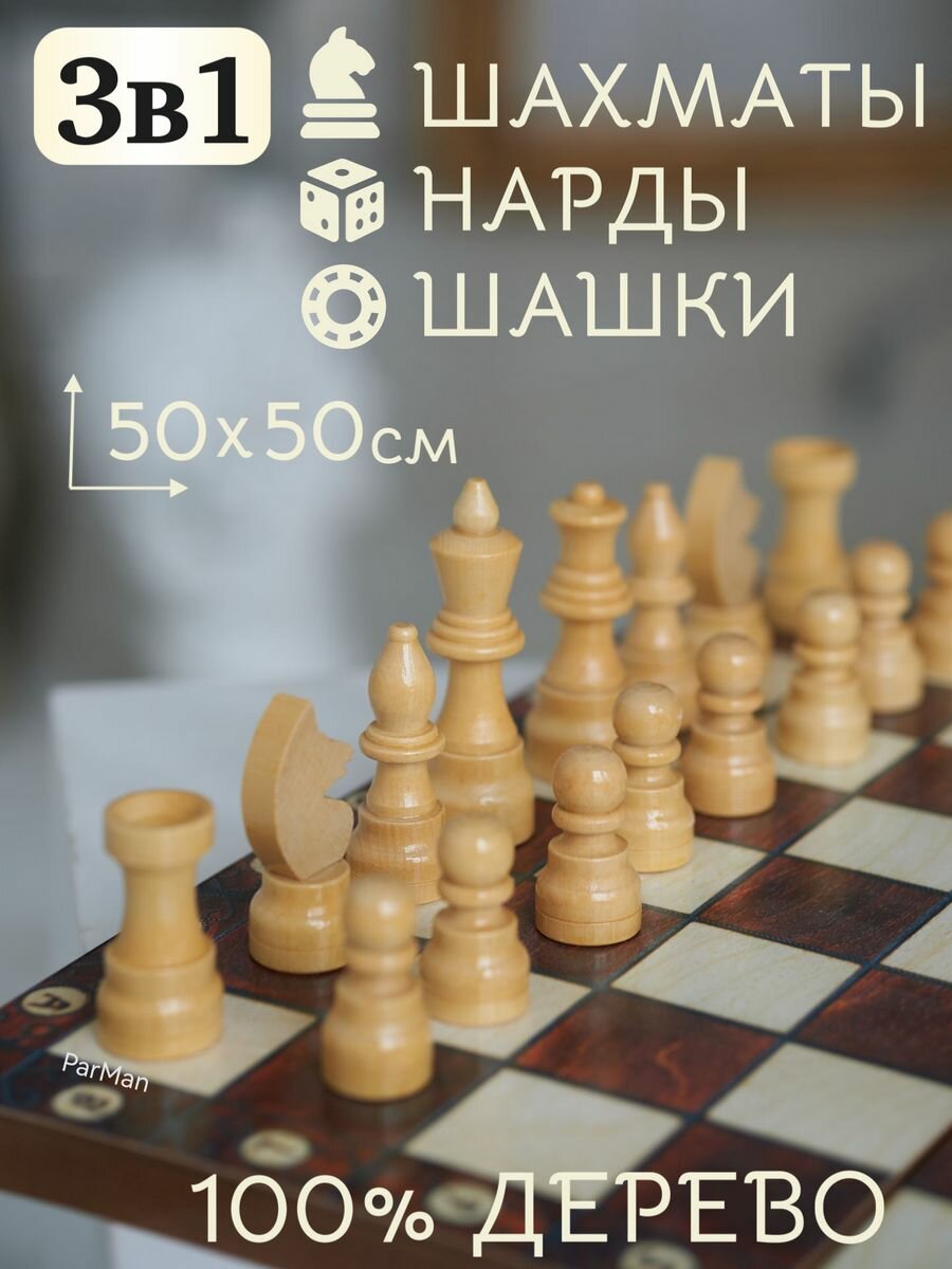 Шахматы деревянные нарды шашки 3в1 50*50 см