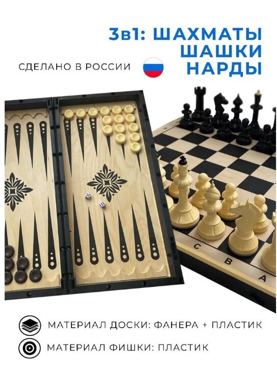 Шахматы, нарды, шашки, настольная игра 3 в 1, размер 40 х 40 интересное: