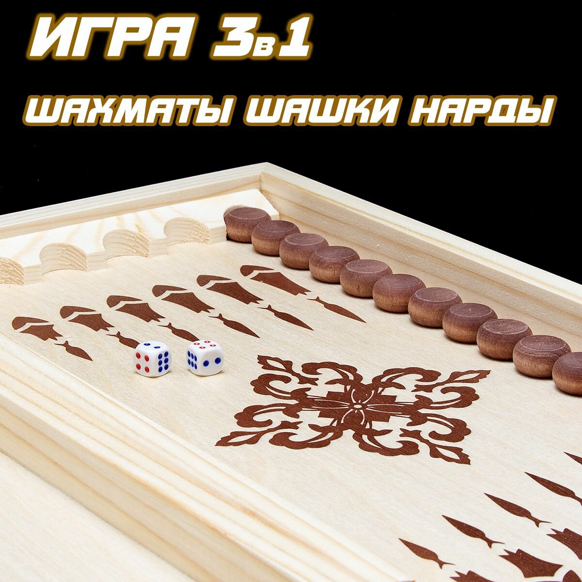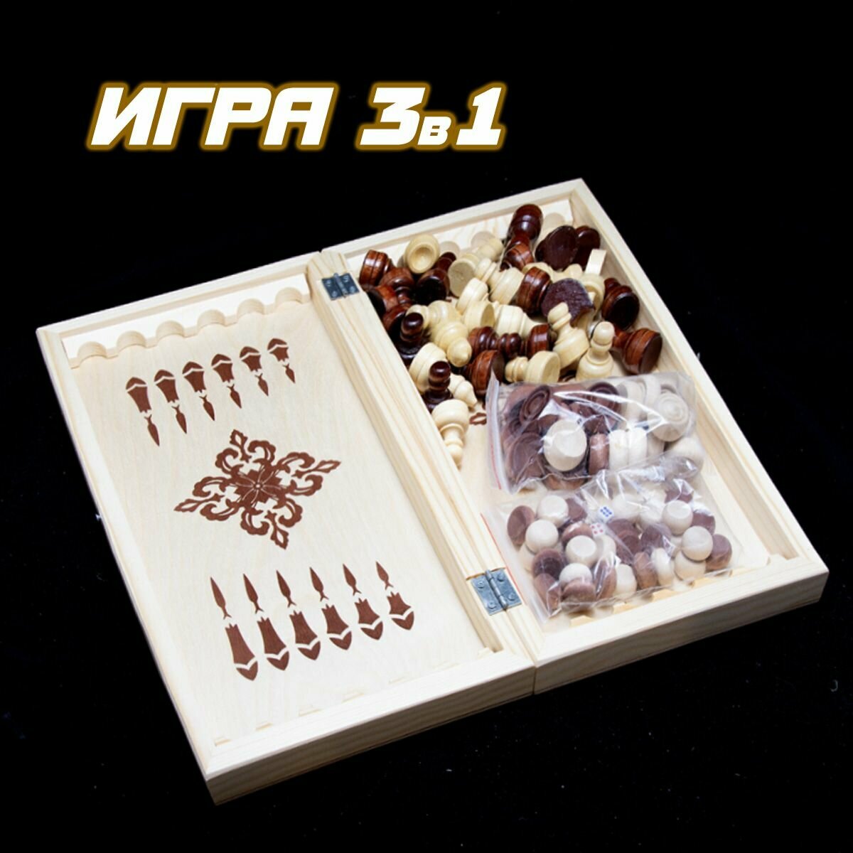 Игра "3 в 1" ладья НШ-2 (Нарды, Шахматы, Шашки) интересное:
