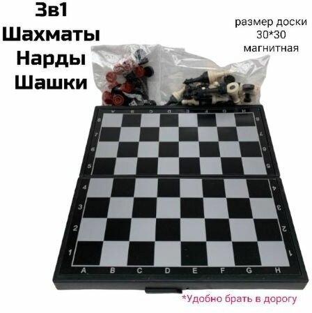 Набор настольных игр 3 в 1 Шахматы, Шашки и Нарды. Магнитная доска 30 х 30 см. интересное: