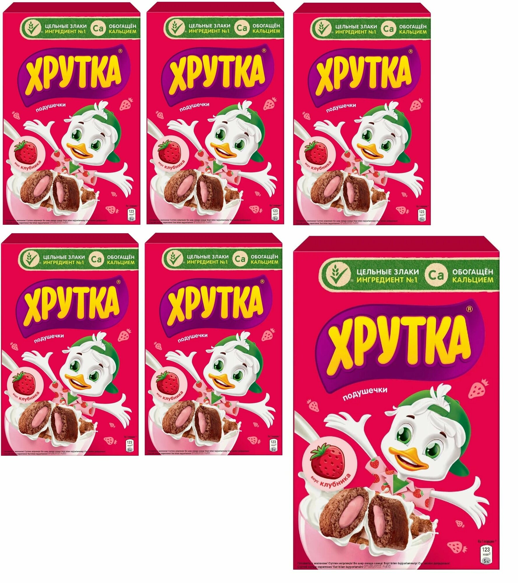Купить Готовый завтрак, "Хрутка" Злаковые подушечки с начинкой со вкусом клубники, обогащенные кальцием, 220г 6 шт