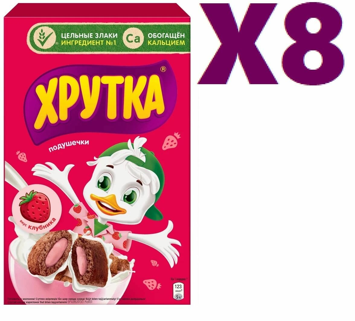 Купить Готовый завтрак, "Хрутка" Злаковые подушечки с начинкой со вкусом клубники, обогащенные кальцием, 220г 8 шт