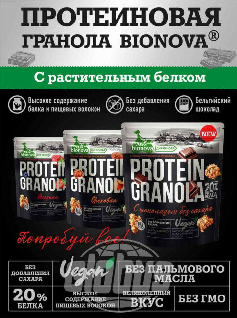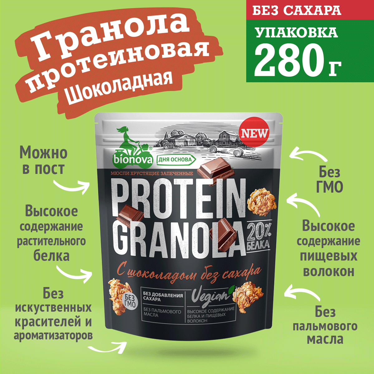 BIONOVA Мюсли Хрустящие Запеченные Гранола Протеиновая Шоколад без Сахара 280 гр