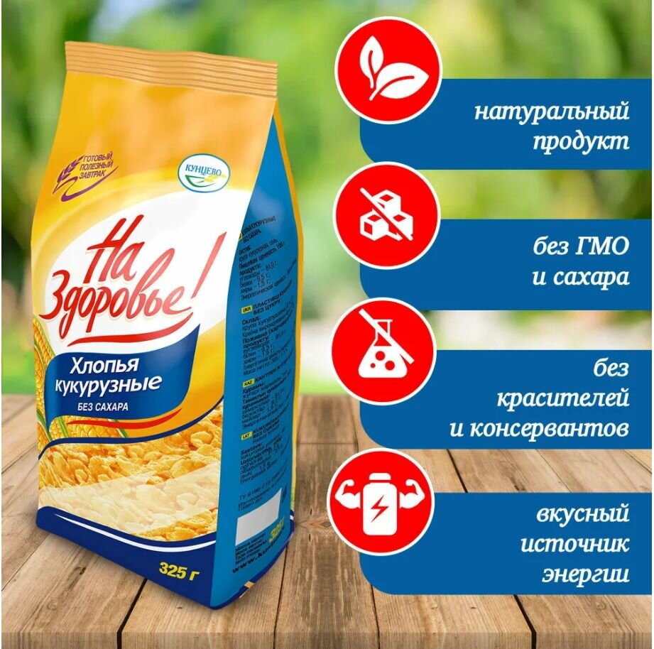 Кукурузные хлопья Без сахара "На здоровье" 3 пачки по 325 гр. интересное:
