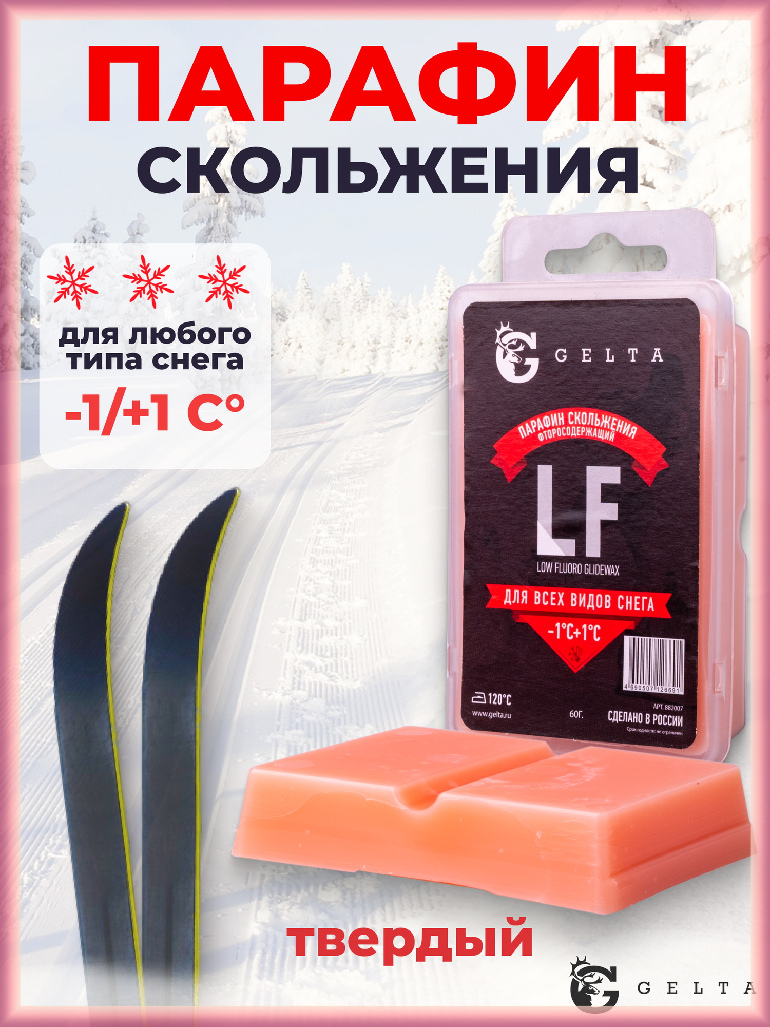 Гелта. Твердый парафин LF от +1 до +5 градусов для всех типов снега