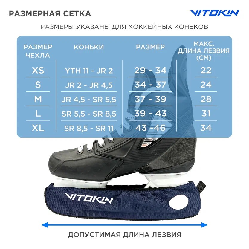 Чехлы для лезвий хоккейных коньков синий VITOKIN, размер XL