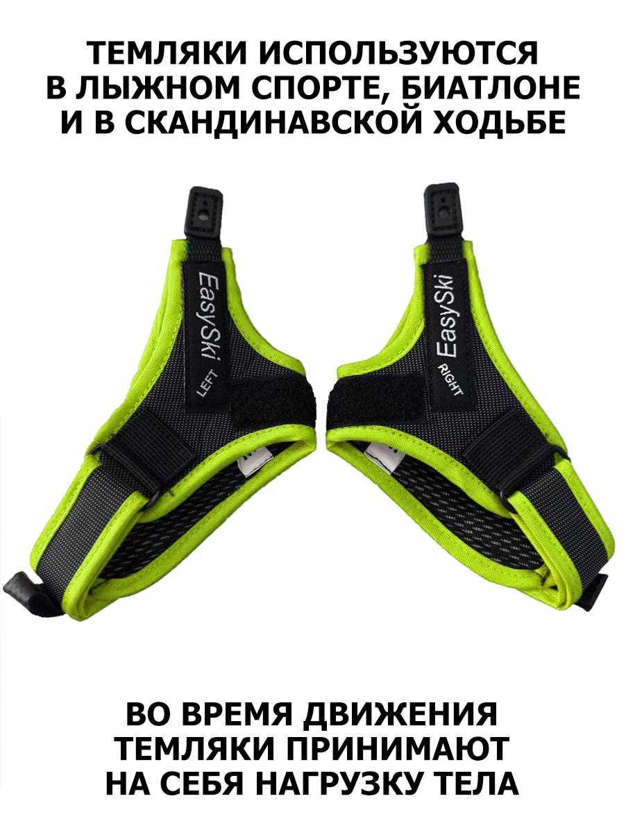 Темляки XL для лыжероллерных, роллеров, лыжных, скандинавских палок палок с креплением Clip, черный,зеленый