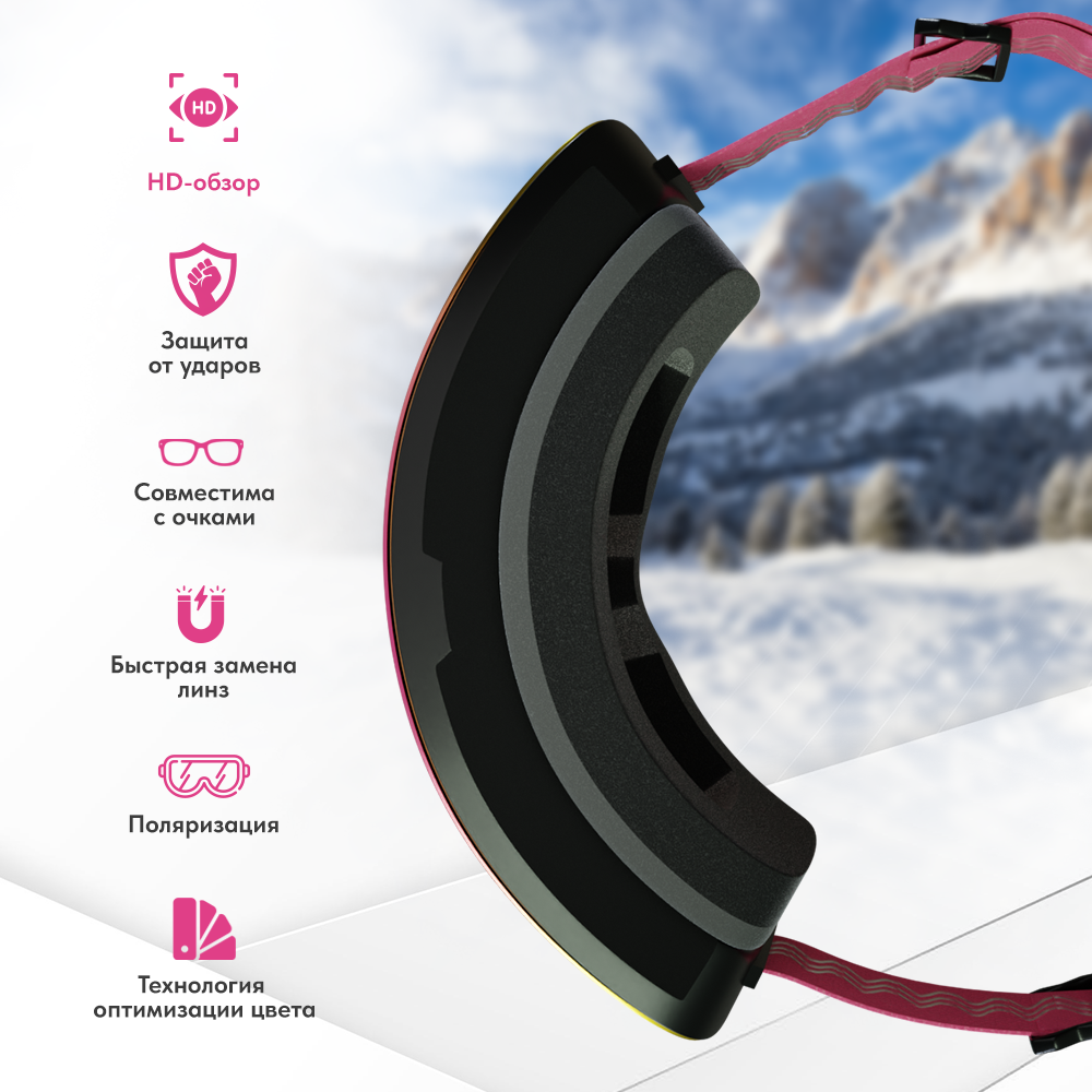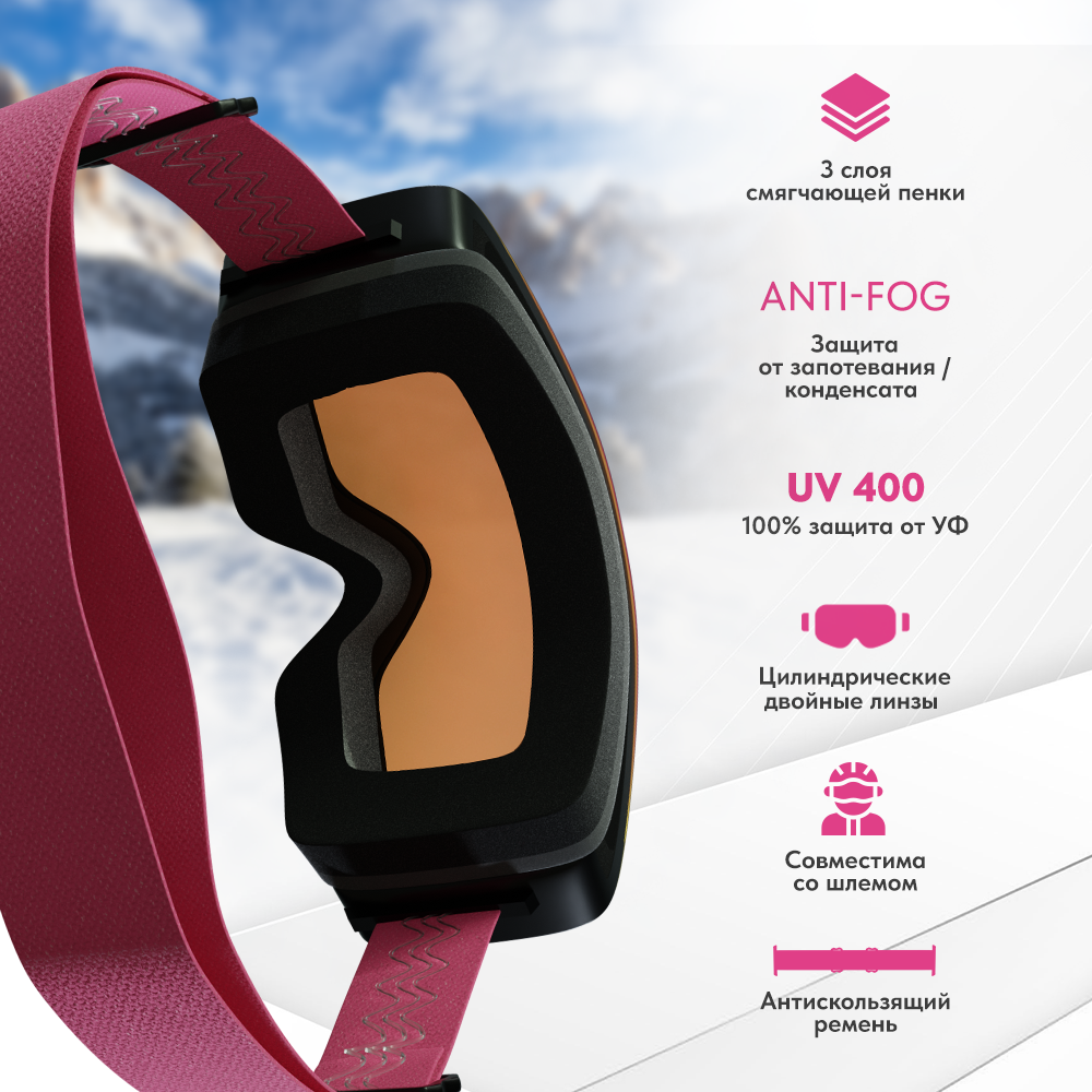 Очки горнолыжные, маска сноубордическая розовая ISKIDO интересное: