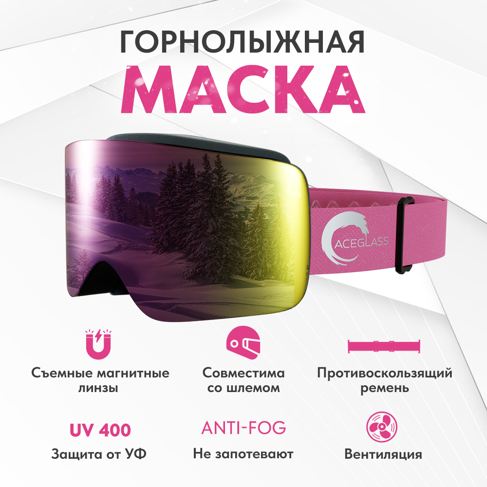 Купить Очки горнолыжные, маска сноубордическая розовая ISKIDO