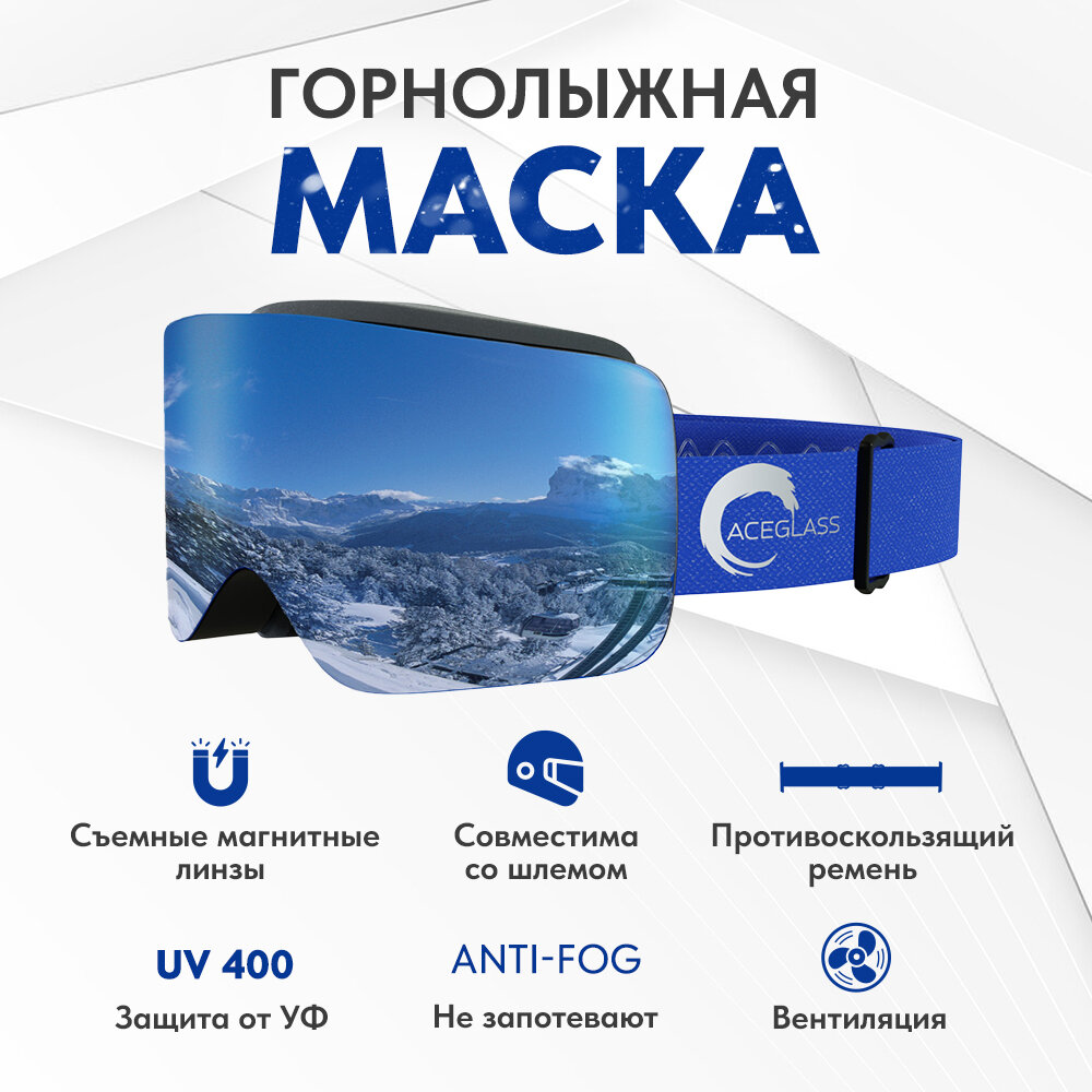 Купить Очки горнолыжные, маска сноубордическая синяя ISKIDO