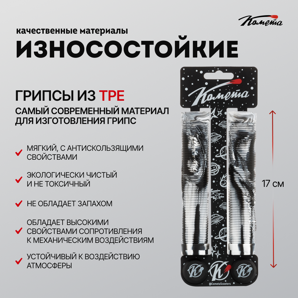 Ниже Вы можете прочитать отзывы на Грипсы Комета Альфа Черно-белые, ознакомится с подробными характеристиками, посмотреть интересные обзоры и фотографии на Грипсы Комета Альфа Черно-белые.