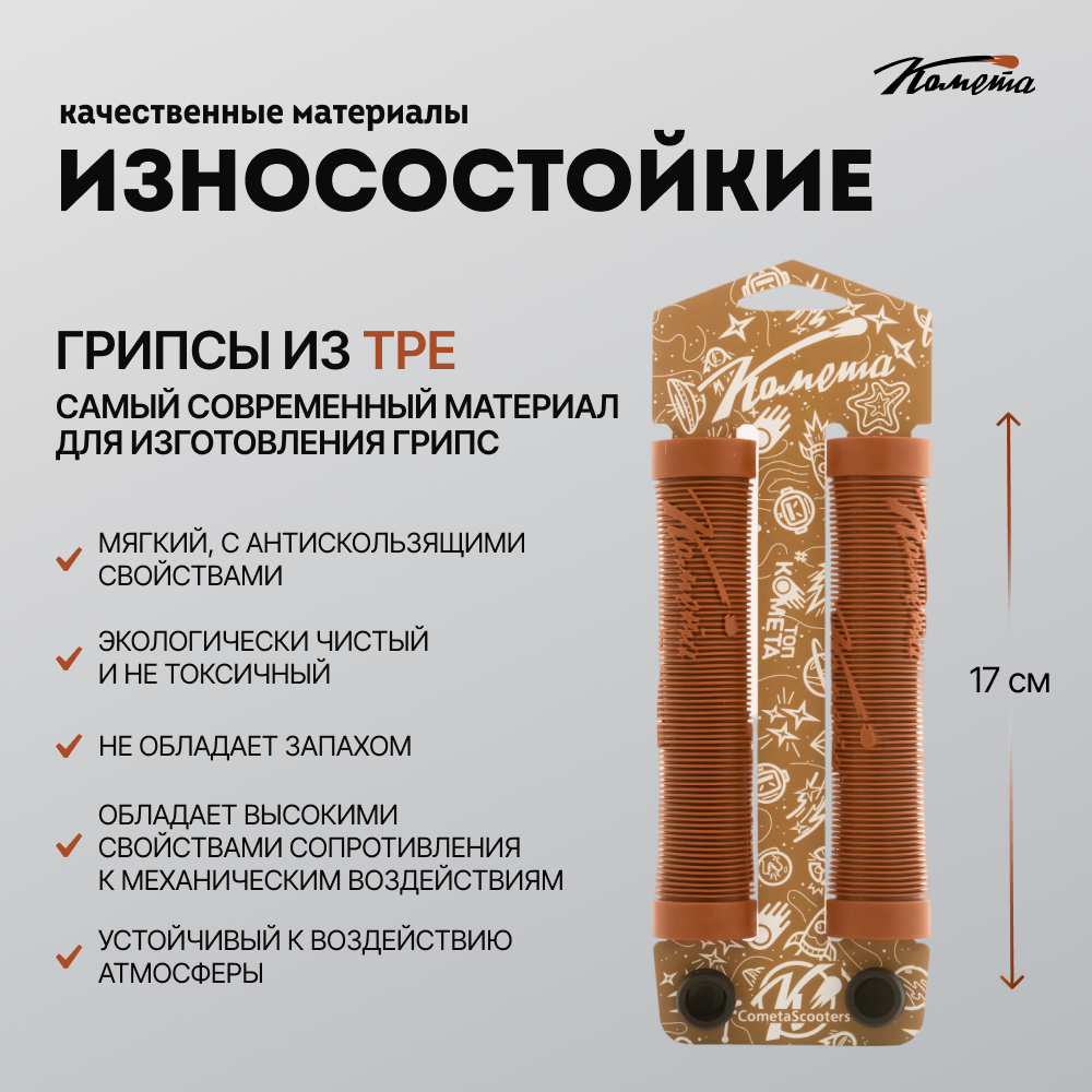 Ниже Вы можете прочитать отзывы на Грипсы Комета Альфа Коричневые, ознакомится с подробными характеристиками, посмотреть интересные обзоры и фотографии на Грипсы Комета Альфа Коричневые.