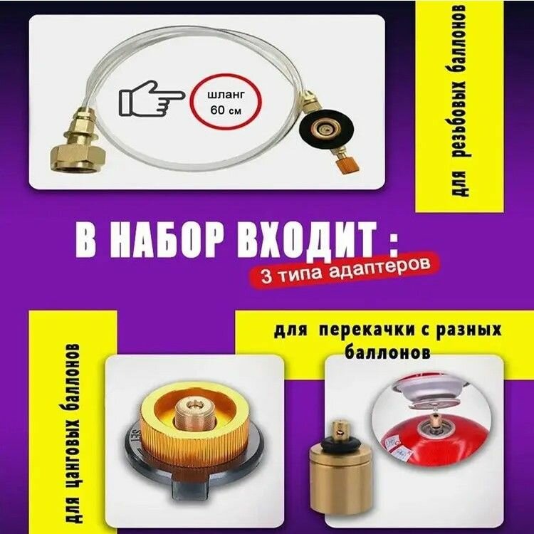 Адаптер с полным набором переходников для заправки резьбовых и туристических газовых баллонов интересное: