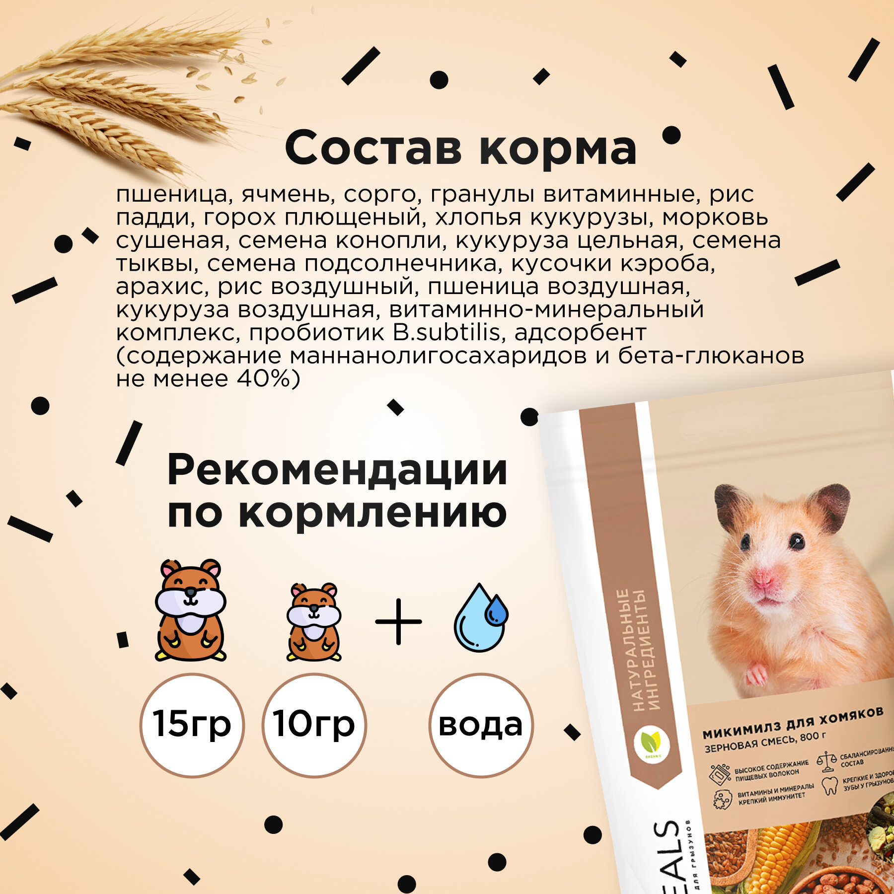 Корм для хомяков MIKIMEALS, 800 гр интересное: