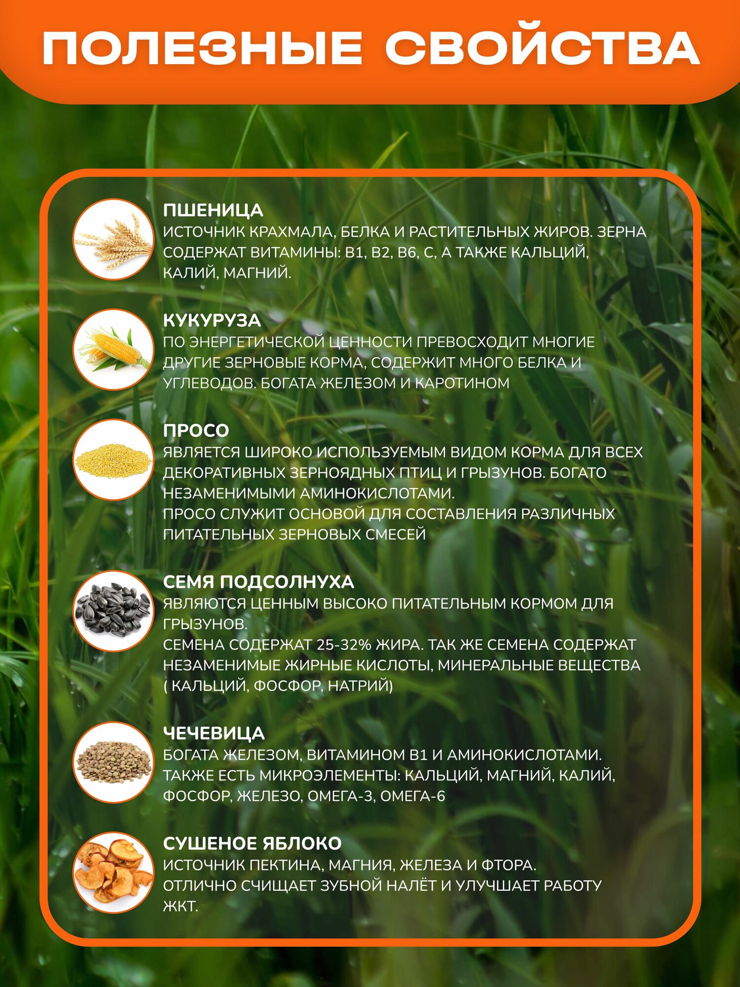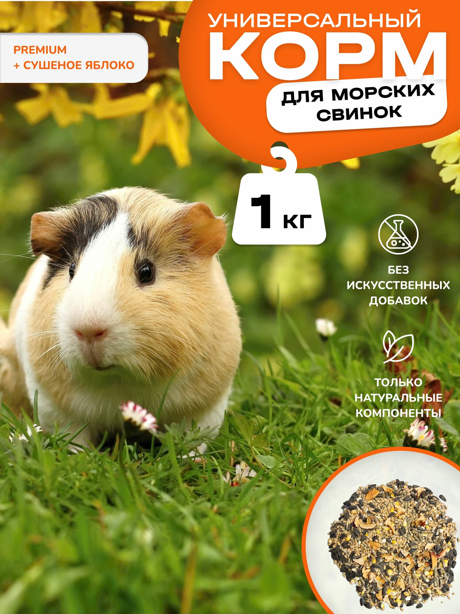Корм для морских свинок зерновая смесь с гранулами, сушеным яблоком и арахисом 1 кг интересное: