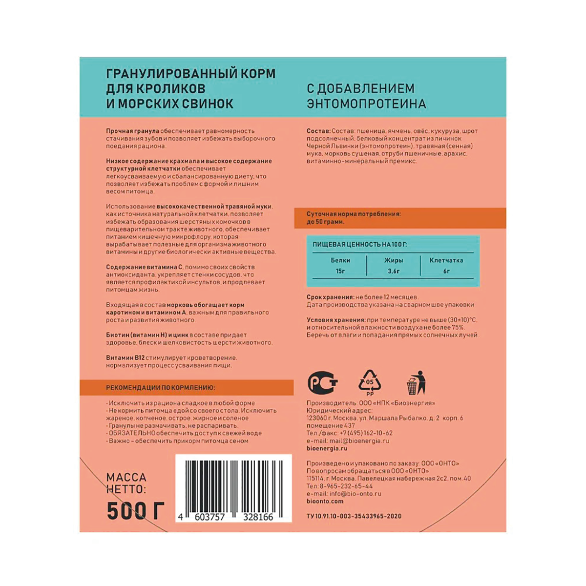 Корм для хомяков, песчанок, крыс и мышей ONTO гранулированный, 500г интересное: