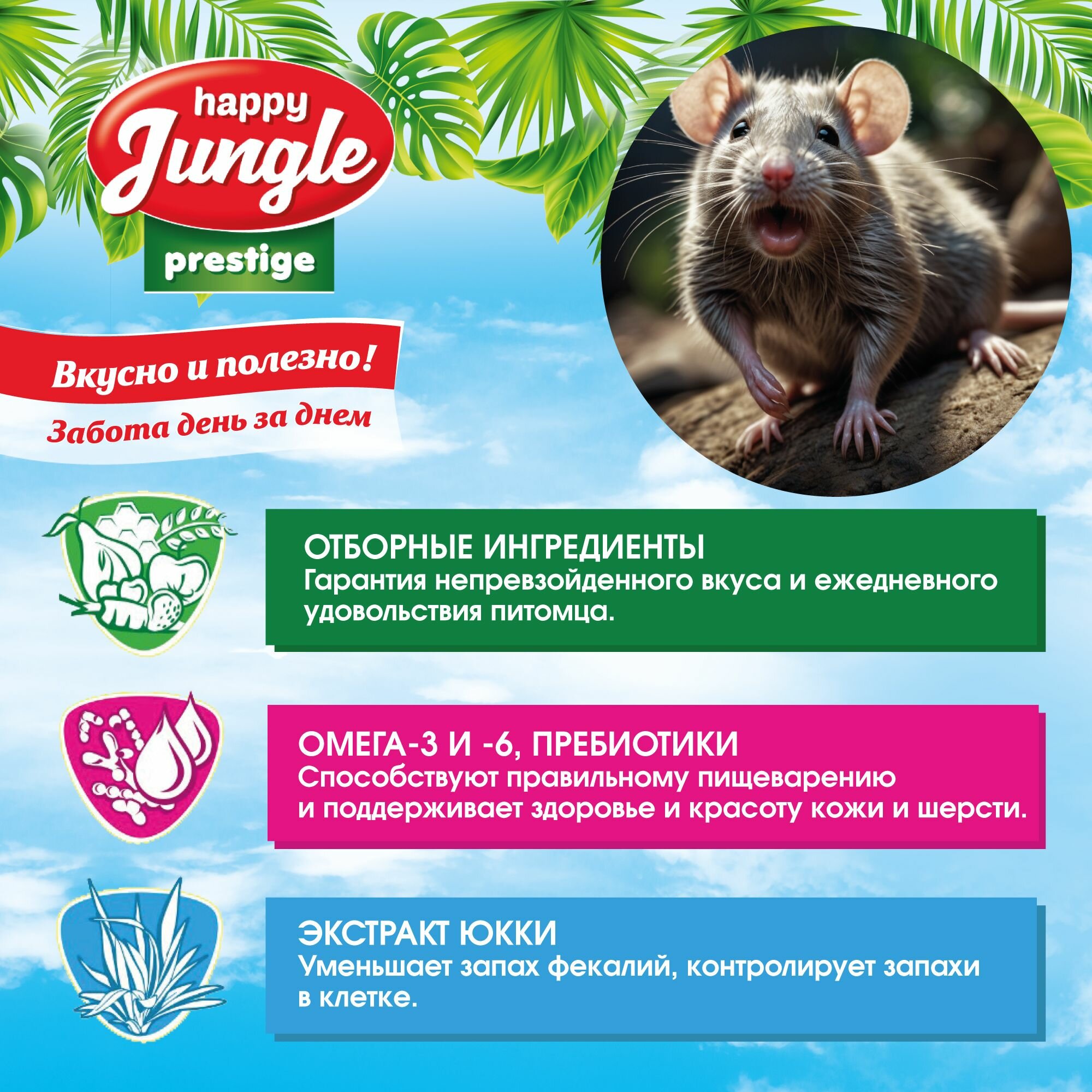 Корм сухой Happy Jungle Престиж для крыс 500 г интересное: