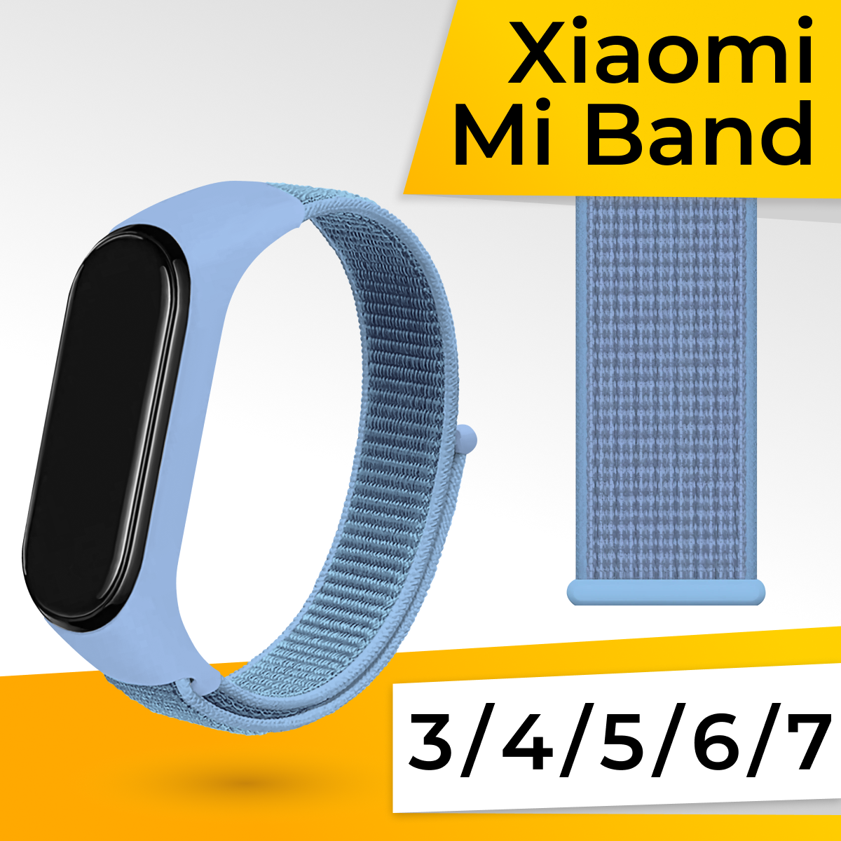 Купить Нейлоновый ремешок для фитнес браслета Xiaomi Mi Band 3, 4, 5, 6, 7 / Спортивный тканевый браслет для смарт часов Сяоми Ми Бэнд 3-7 / Синий