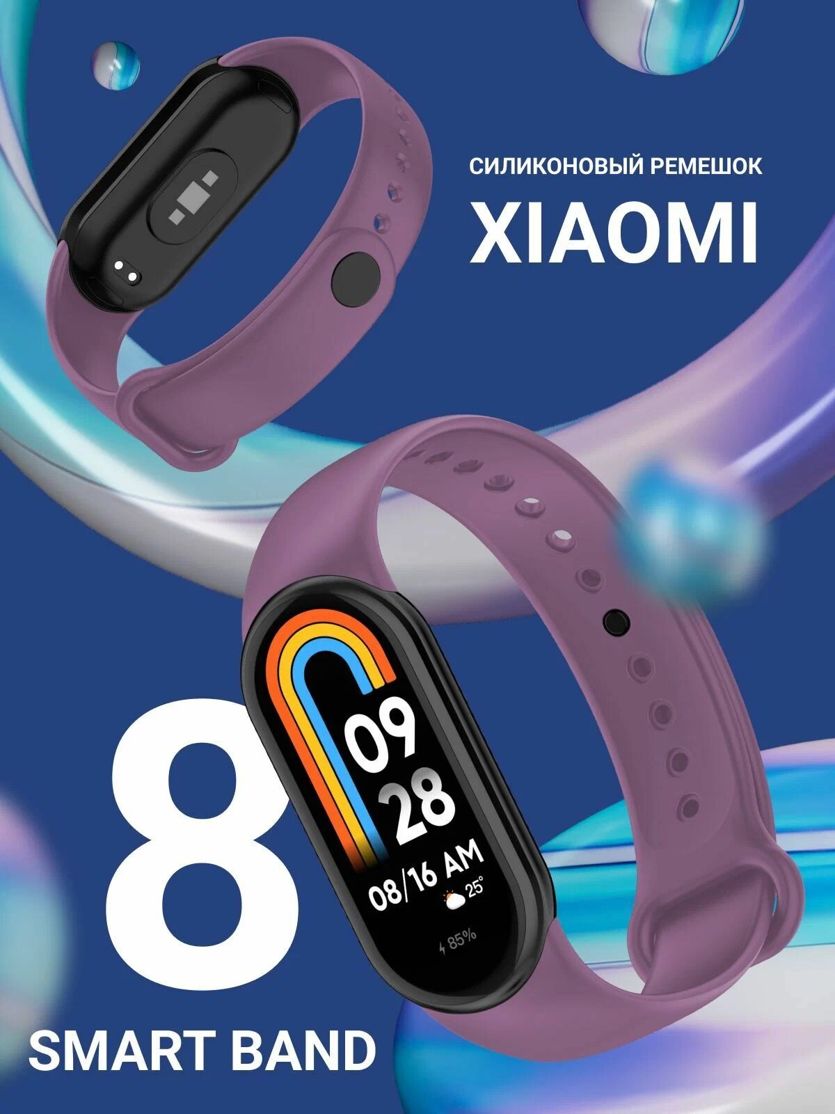 СохранитьСиликоновый ремешок для Xiaomi Mi Smart Band 8, Xiaomi Mi Band 8 (фиолетовый) интересное: