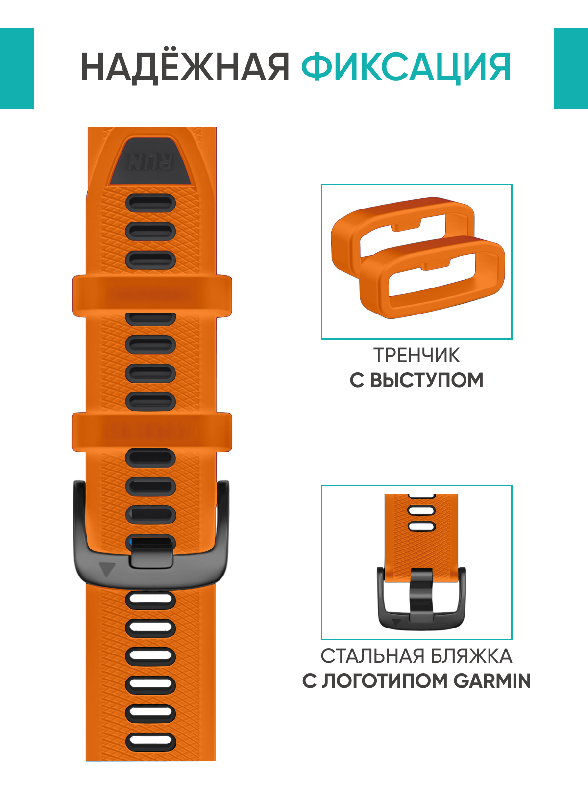 Ремешок для часов Garmin 22 мм черно-оранжевый, Garmin Forerunner 965,265,255 и другие