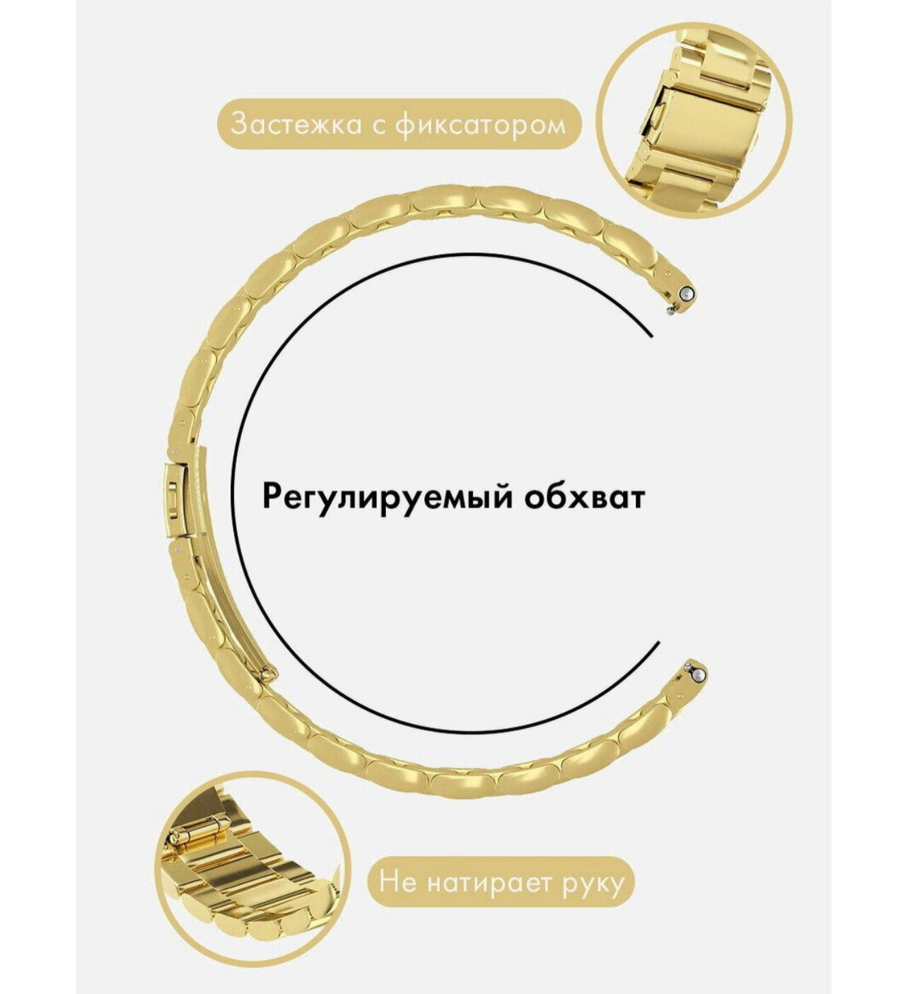 СохранитьМеталлический ремешок универсальный 22 мм/ Браслет блочный для часов Huawei,Amazfit.Honor 22 мм. Золотой интересное: