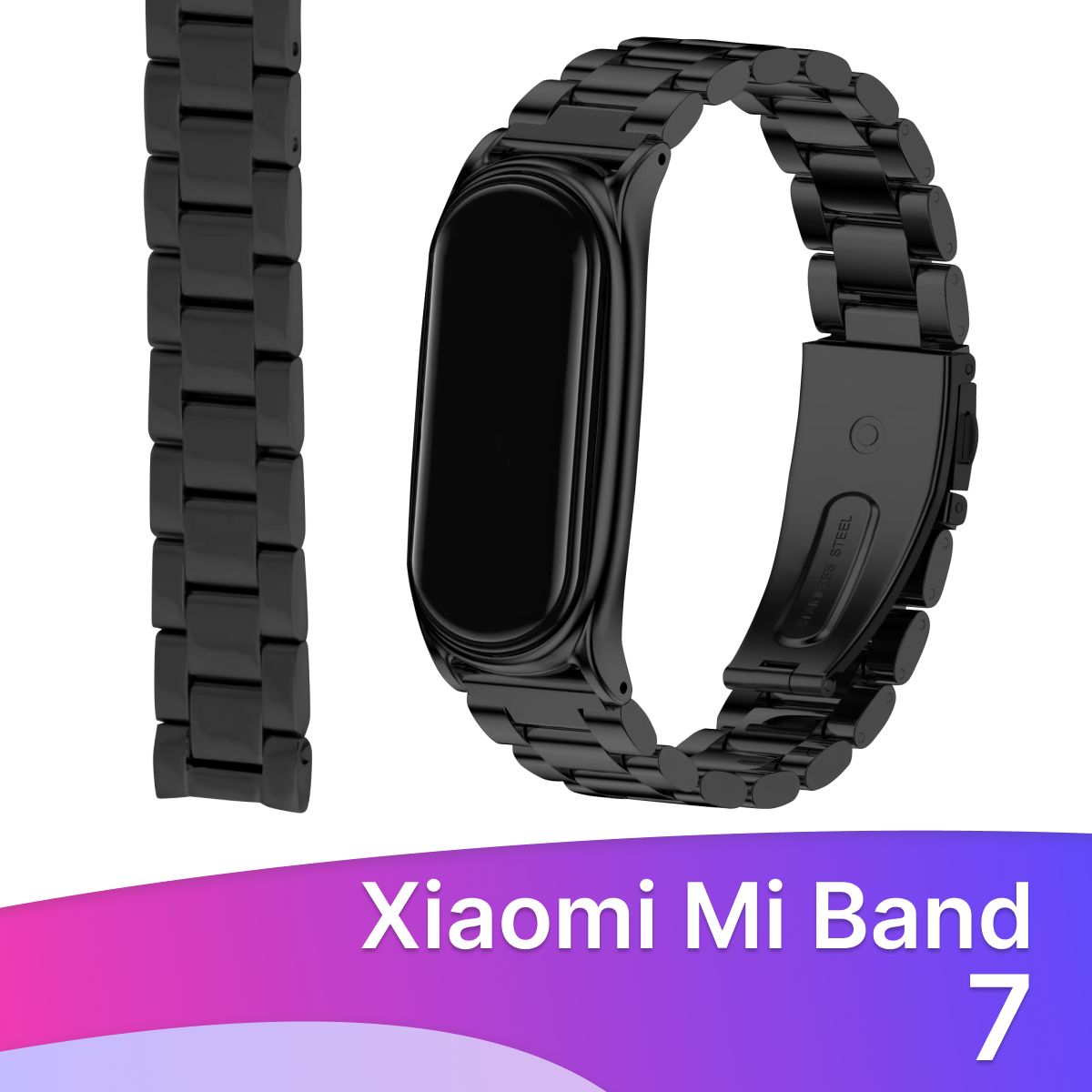 Купить Металлический ремешок для фитнес браслета Xiaomi Mi Band 7 / Сменный блочный браслет для смарт часов на застежке Сяоми Ми Бэнд 7 (Черный)