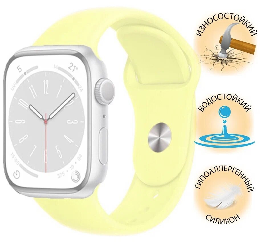 СохранитьРемешок силиконовый Sport Band для Apple Watch 38/40/41 mm. Светло-желтый интересное: