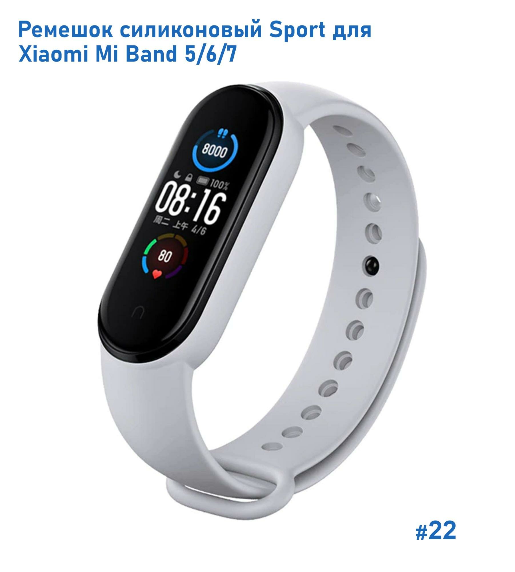 СохранитьРемешок силиконовый Sport для Xiaomi Mi Band 5/6/7, на кнопке, серый (22) интересное: