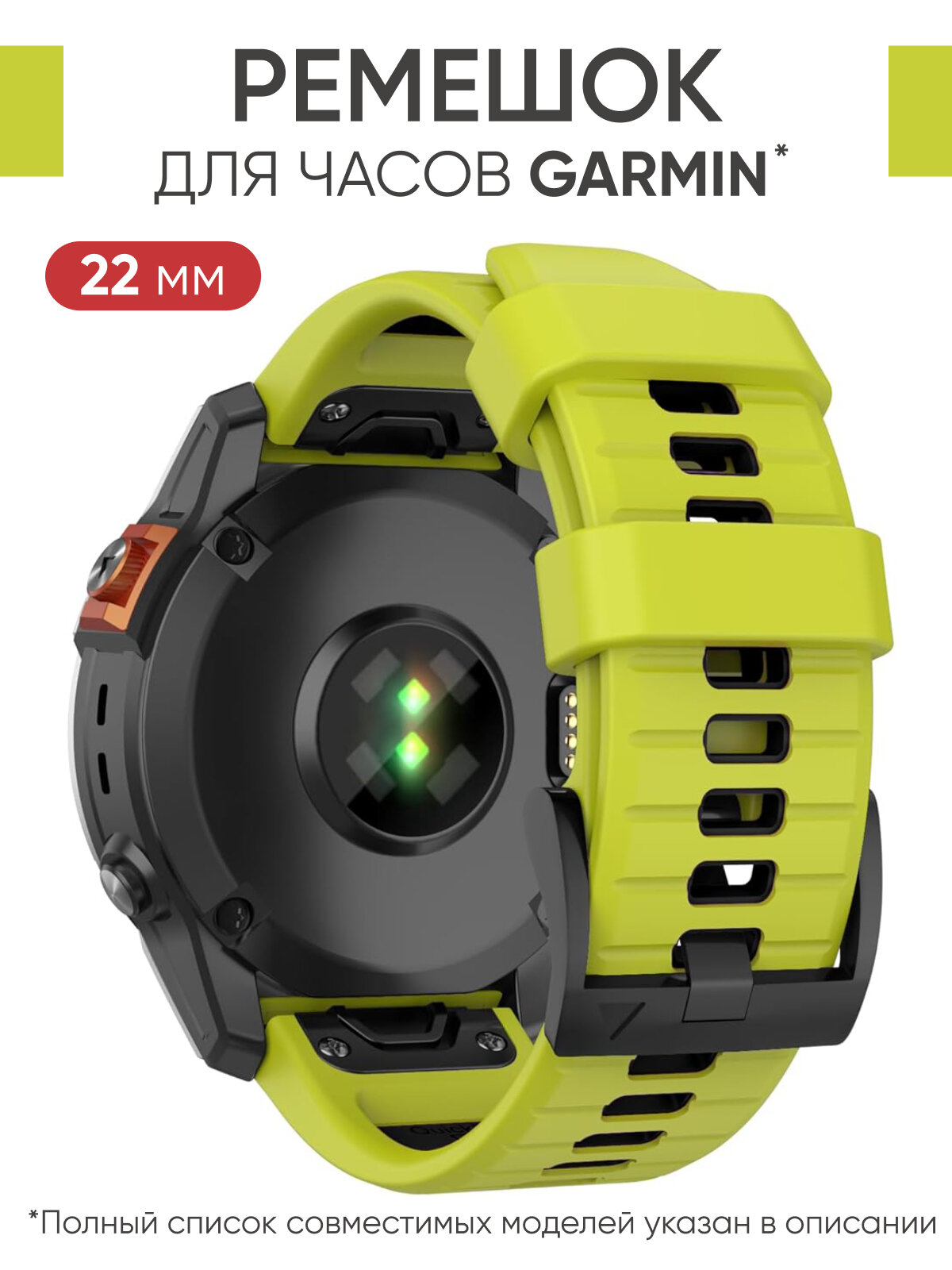 СохранитьРемешок силиконовый 22 мм для часов Garmin салатовый интересное: