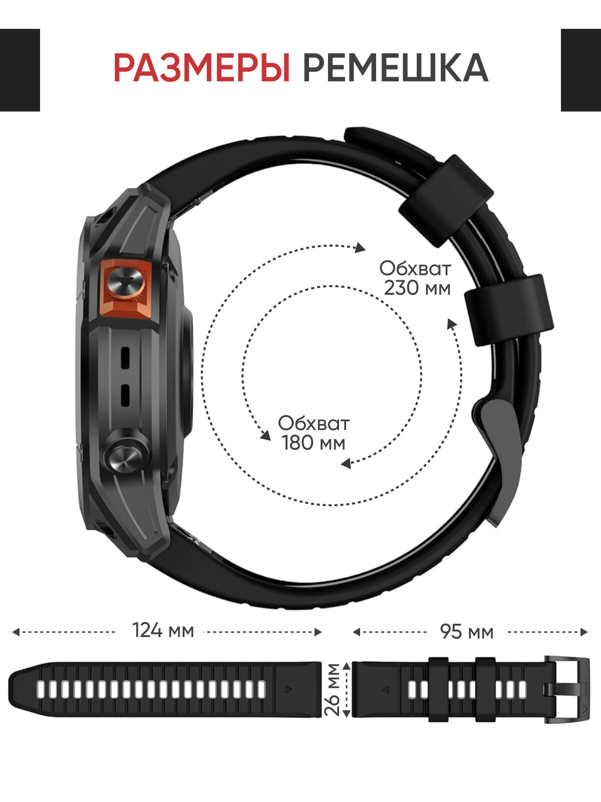 Ремешок силиконовый 26 мм для часов Garmin черно-красный. Для Garmin Fenix 7X Pro, 6X Pro, Tactix и др.
