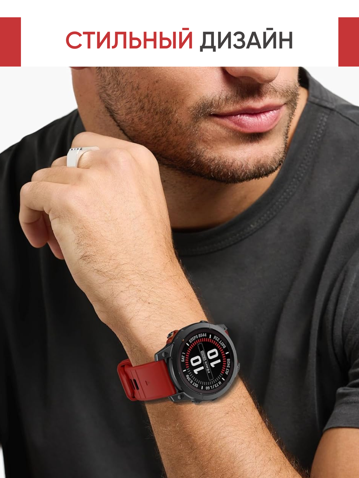 Ремешок для часов Garmin 26 мм, красный. Для Garmin Fenix 7X Pro, 6X Pro, Tactix и др.