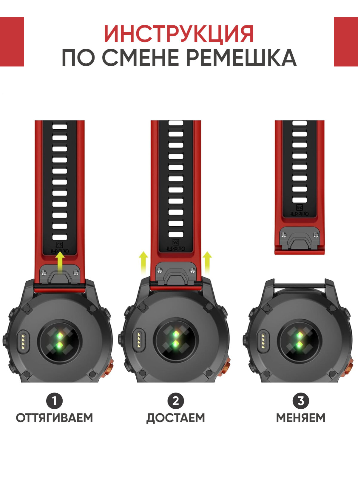 Ремешок силиконовый 26 мм для часов Garmin черно-красный. Для Garmin Fenix 7X Pro, 6X Pro, Tactix и др.