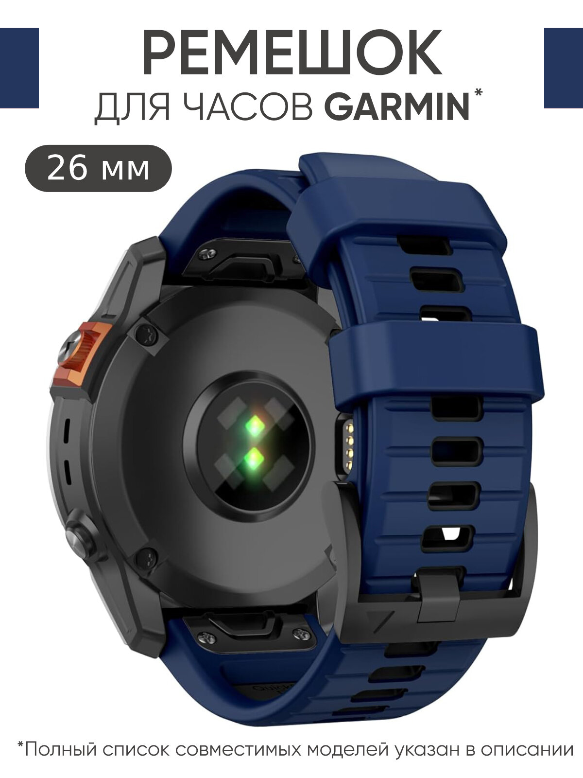 Купить Ремешок силиконовый 26 мм для часов Garmin синий. Для Garmin Fenix 7X Pro, 6X Pro, Tactix и др.