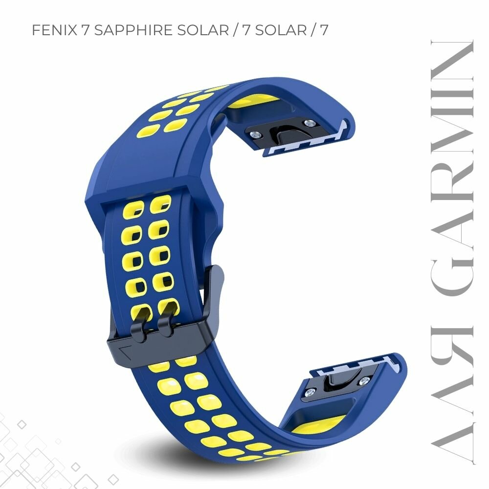 Ремешок для часов Garmin Fenix 7 22 мм, темно-синий/желтый интересное: