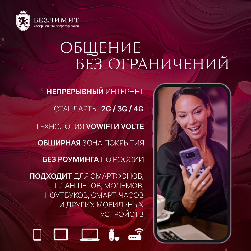 SIM-карта Безлимит по РФ с Wi Fi, для всех устройств, 990 р / в месяц/ сим карта
