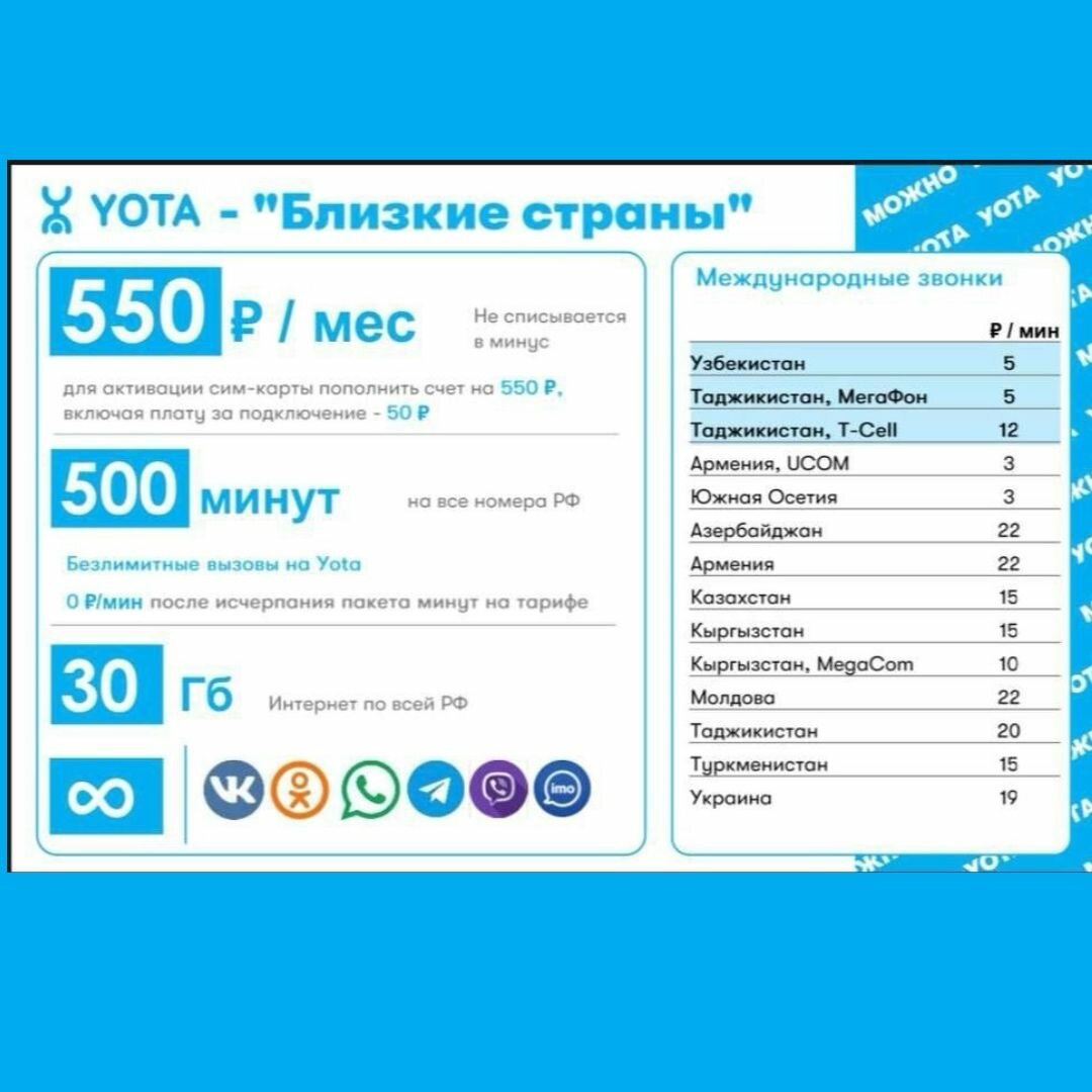 | Количество минут в месяц | 500 мин. |