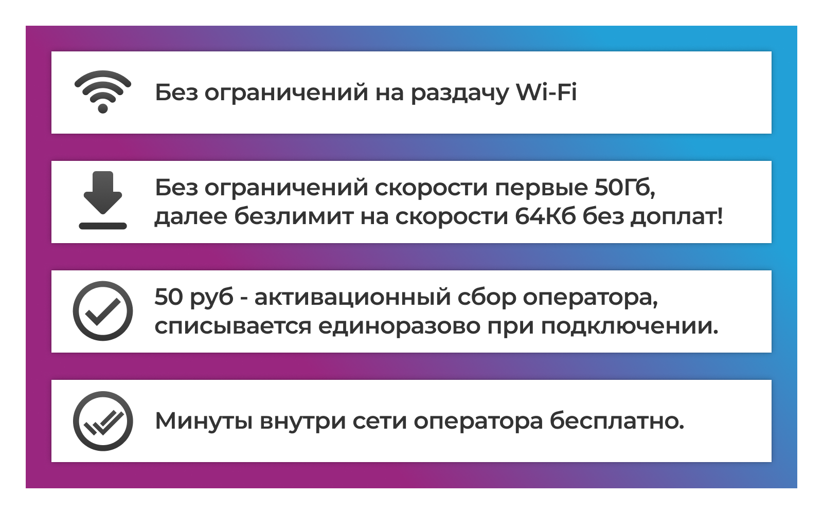 SIM-карта Безлимит по РФ с Wi Fi, для всех устройств, 990 р / в месяц/ сим карта