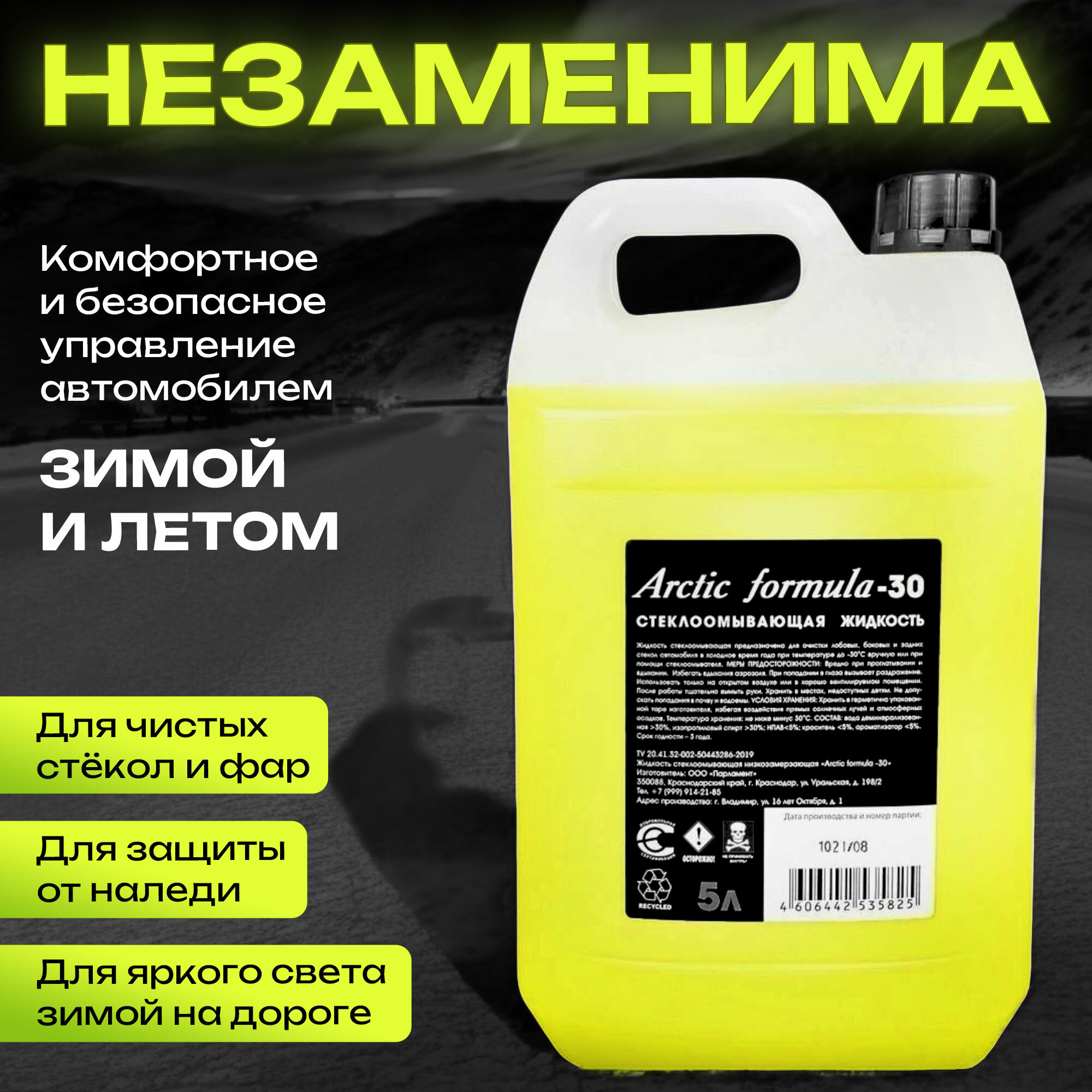 Незамерзайка для автомобиля Arctic Formula жидкость стеклоомывателя зимняя, 5л интересное: