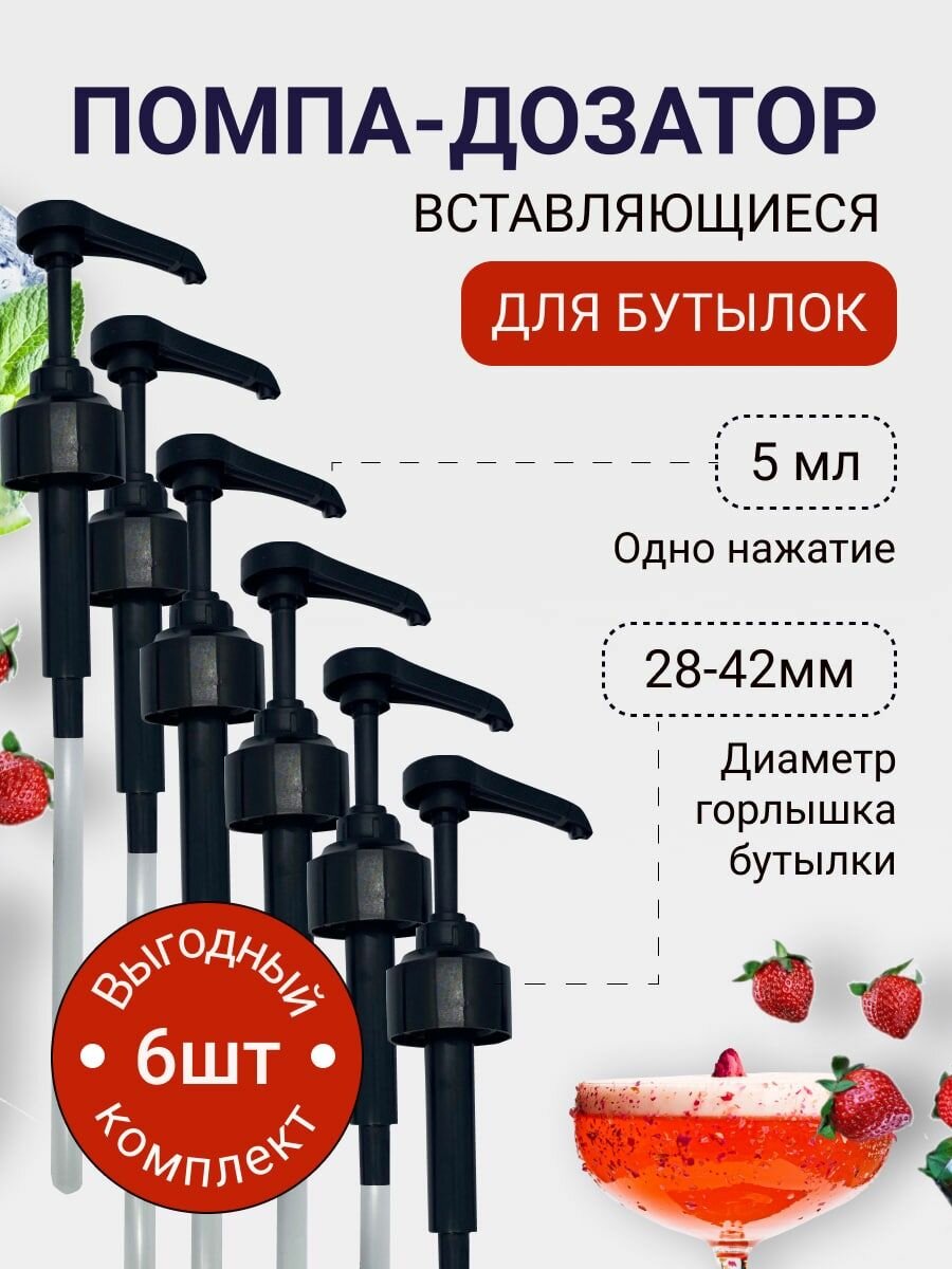 Помпа- дозатор универсальная, для бутылок, вставляющаяся для сиропов spoom баринофф barinoff monin, дозатор 5 мл - 6 шт интересное: