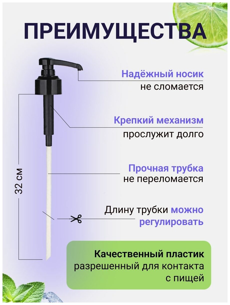 Помпа- дозатор универсальная, для бутылок, вставляющаяся для сиропов spoom баринофф barinoff monin, дозатор 5 мл - 6 шт