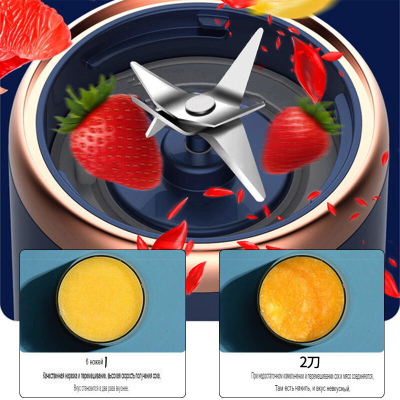 Измельчитель ягод, фруктов для сока с мякотью, смузи 400ml usb зарядка + герметичный стакан 400ml / синий интересное: