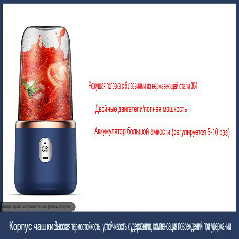 Купить Измельчитель ягод, фруктов для сока с мякотью, смузи 400ml usb зарядка + герметичный стакан 400ml / синий