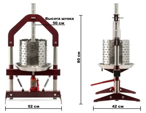 | Дополнительная информация | гидравлический домкрат: давление составляет 3.7 килограмм на квадратный сантиметр, максимальная грузоподъемность - 2 тонны; фильтровальный мешок из бязи, перед использованием мешок необходимо смочить водой и отжать; габаритные размеры: 899*529*420 мм, общий вес: 19 кг, производительность: 1 литр сока в минуту; нержавеющая сталь - AISI 430; сливной носик: длина - 35 мм, диаметр - 16 мм |
