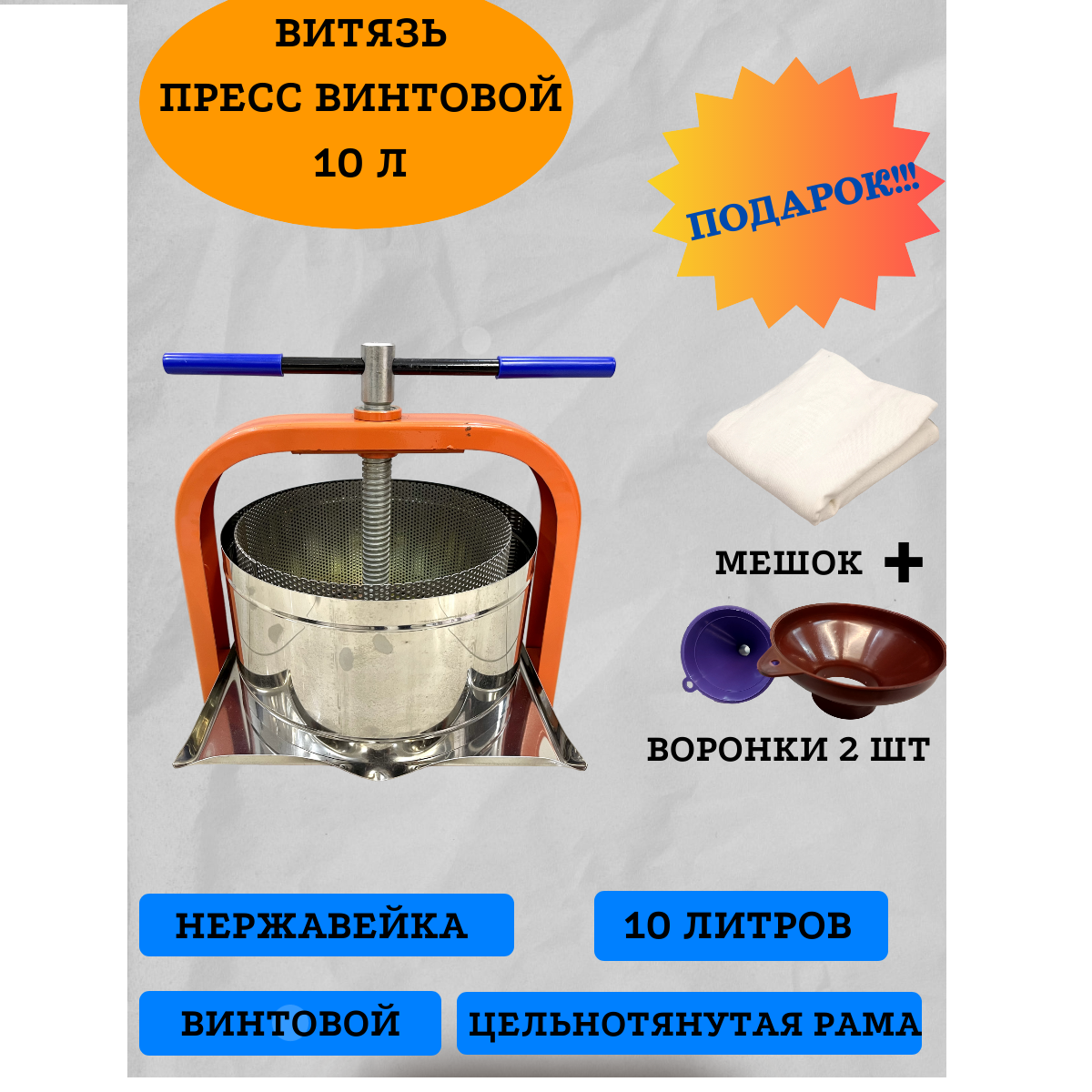 Пресс винтовой для отжима сока из ягод, фруктов и овощей Витязь, 10 л интересное: