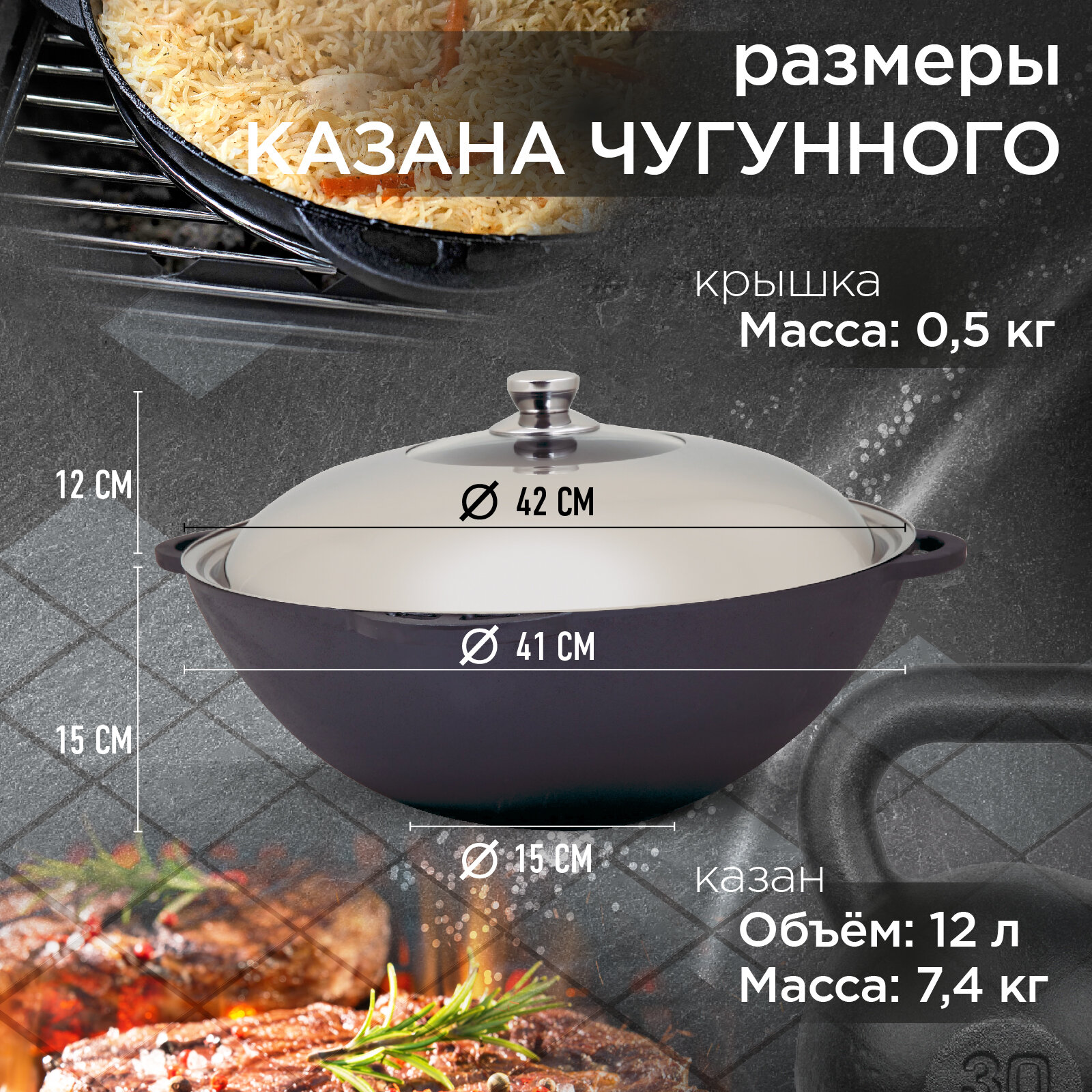 Казан чугунный Forester с крышкой-блюдом из нержавейки, 12 л интересное: