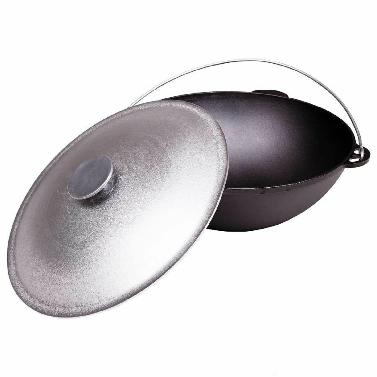 Казан Походный Чугунный Туризм Татарский 8л d360 h143 с Алюминиевой Крышкой Гардарика 1608-6